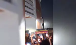 The selfie is clicked in a classic Vijay style, he climbed on the top of the truck and took a selfie of all the people who were gathered there to see him.