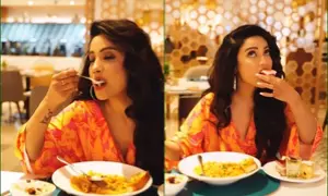 Adaa took to Instagram, where she shared a video of herself sitting in a restaurant and binging on some pasta and desserts. She is seen enjoying her meal dressed in an orange ensemble and completed her look with soft curls and minimal make-up.