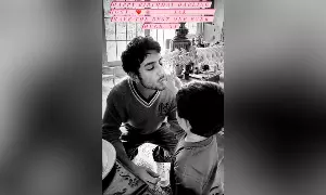 Taking to Instagram Stories, Kareena shared a monochrome picture of the birthday boy, wherein Ibrahim can be seen sitting in their home.