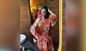 The string of photos shows Kritika posing for a mirror selfie in a red floral bathing gown, flaunting her bare skin. There is also a glimpse of a cottage in a forest, a video which features her taking a stroll in the forest lanes, natural beauty and a glimpse of the diva taking the sun bath.