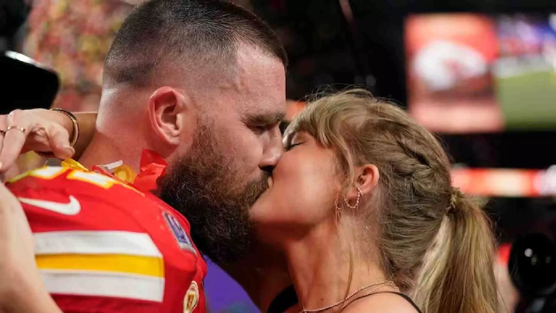 Taylor kisses boyfriend Travis as Kansas City Chiefs win Super Bowl 2024