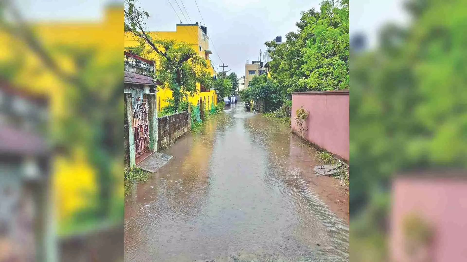 Stagnated water seen on a road in Kanmalai Nagar under Tambaram corporation