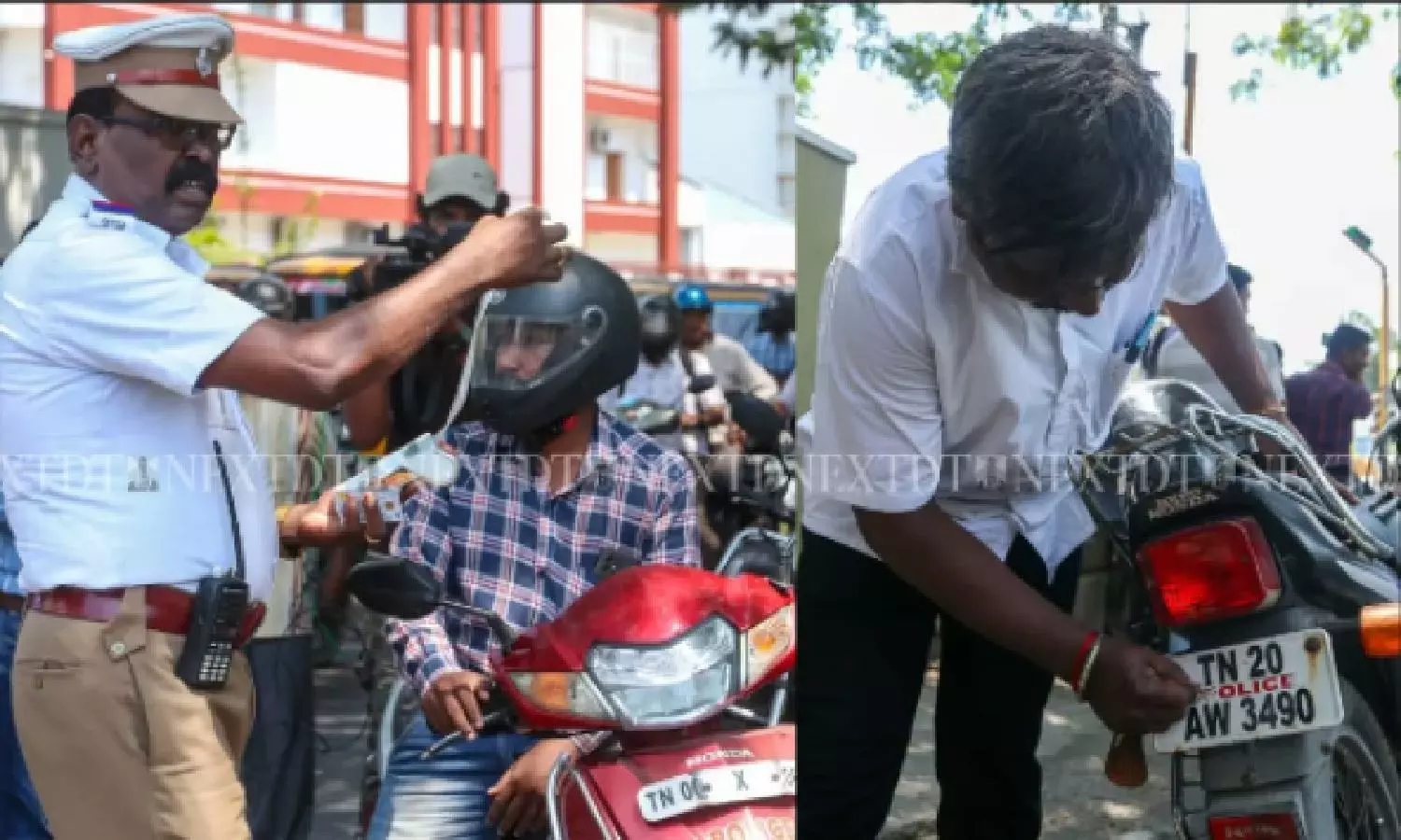 The GCTP is imposing fines on motorists with unauthorized stickers on vehicles at Egmore (Photo: Hemanathan M)