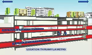Thirumayilai station consists of 3 platforms and overall, will have four levels, including the concourse. The trains will ply between Madhavaram and Sipcot in 3 levels — the lowest level of 35 metres deep, followed by the 24-metre deep second level and the third level would be 17 metres deep.