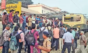 Passengers protest against delay in train services at Kancheepuram railway station
