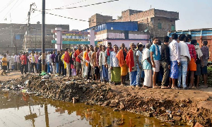 "What is this? This is water! If someone breaks a leg or gets hurt, who will accept the responsibility?" an agitated voter told PTI Video.