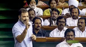 After the treasury benches protested over the poster, pointing out that it was not allowed by the rules, Lok Sabha Speaker Om Birla again asked Gandhi to exercise restraint.