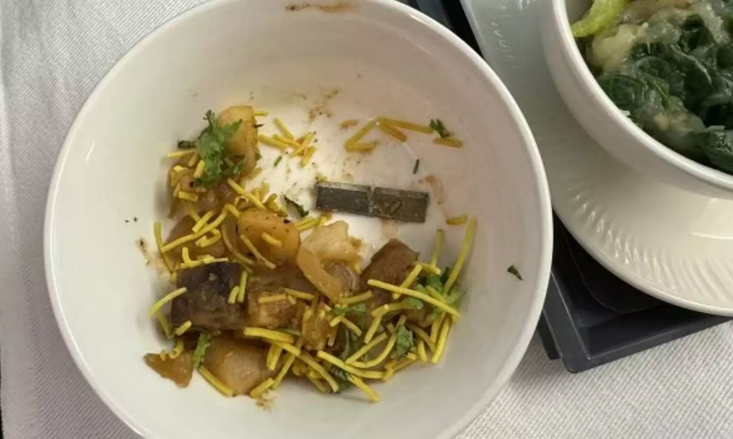 "Air India food can cut like a knife. Hiding in its roasted sweet potato and fig chaat was a metal piece that looked like a blade. I got a feel of it only after chewing the grub for a few seconds. Thankfully, no harm was done," the passenger, Mathures Paul, who is a journalist by profession, said.