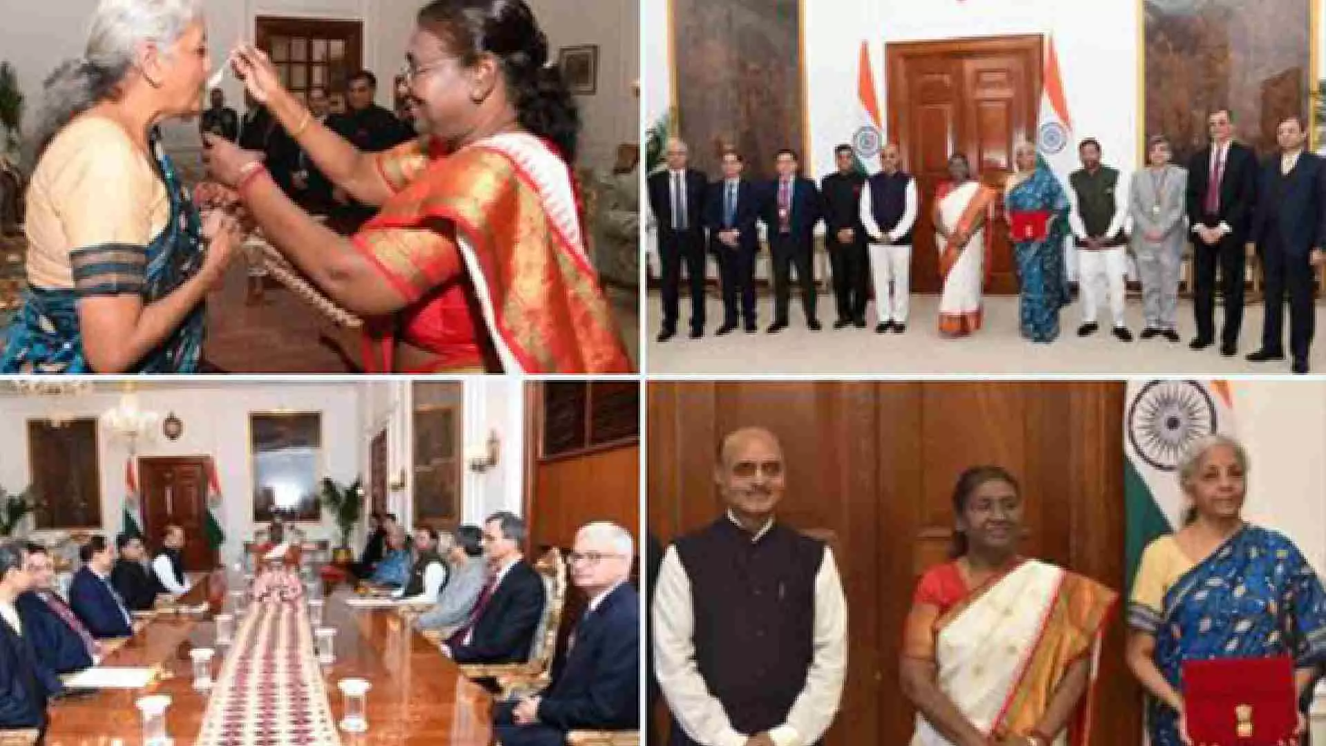 Finance Minister Nirmala Sitharaman with her ministers of State called President Droupadi Murmu (Images: X/Rashtrapati Bhavan