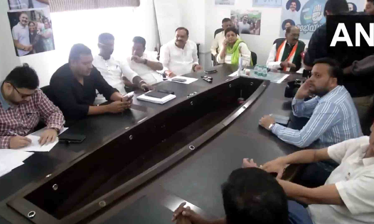 Congress Telangana in-charge Manikrao Thakare along with party leaders observes early trends in election results, in Hyderabad