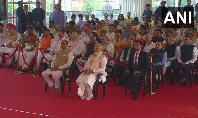 Amid Vedic chants by priests from Karnataka's Shringeri Math, the prime minister performed "Ganapati Homam" to invoke Gods to bless the inauguration of the new Parliament building.