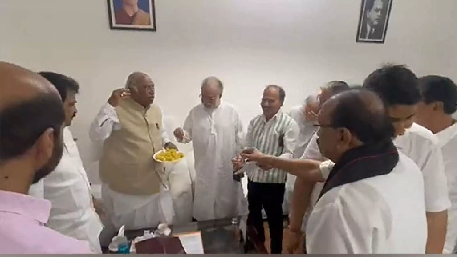 NEW DELHI: Soon after Rahul Gandhi's Lok Sabha membership was reinstated on Monday, Congress leaders began celebrating the occasion. Congress President Mallikarjun Kharge, Congress MP Adhir Ranjan Chowdhury, and other party leaders exchanged sweets on the occasion.