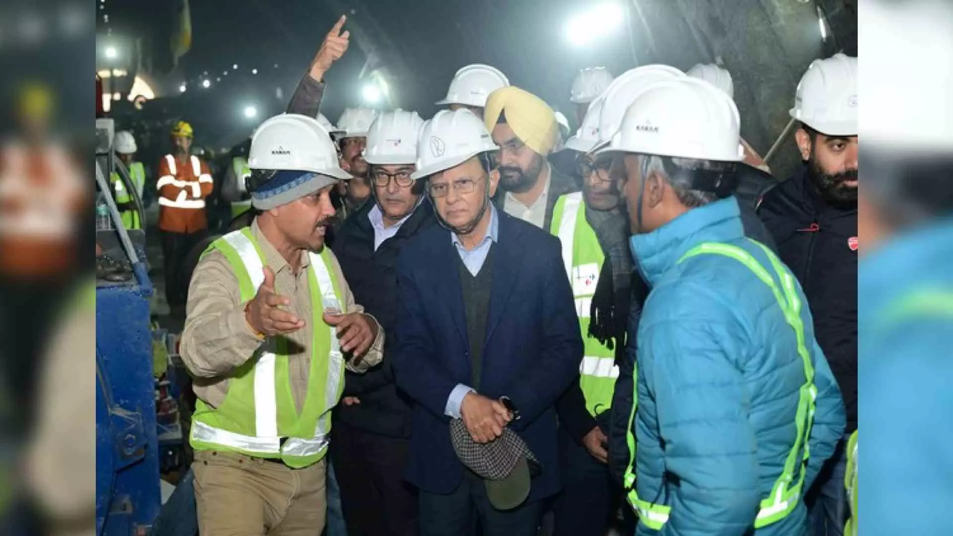 Union Home Secretary Ajay Kumar Bhalla and Uttarakhand Chief Secretary SS Sandhu along with Pramod Kumar Mishra inspected the work inside the tunnel.