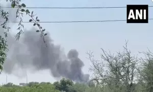 Smoke from the fire at a PVC pipe factory in Jamia (ANI)