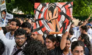 Doctor's protest against the alleged rape and murder of a woman doctor at Kolkata's R G Kar Medical College and Hospital (PTI)