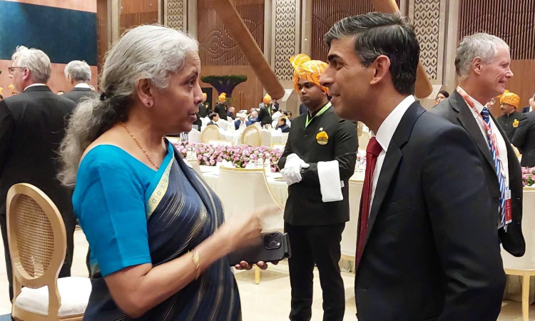 G-20 in India: Union Finance Minister Union Finance Minister Nirmala Sitharaman exchanged pleasantries with UK PM Rishi Sunak, during Ratri Bhoj par Samvad at Bharat Mandapam in New Delhi. They both discussed the issues of mutual interest and areas of collaboration to further enhance the friendship between the two nations: Ministry of Finance