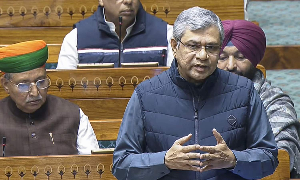 Union Minister Ashwini Vaishnaw speaks in the Lok Sabha during the Winter session of Parliament, in New Delhi, Wednesday, Dec. 17, 2025 (PTI)