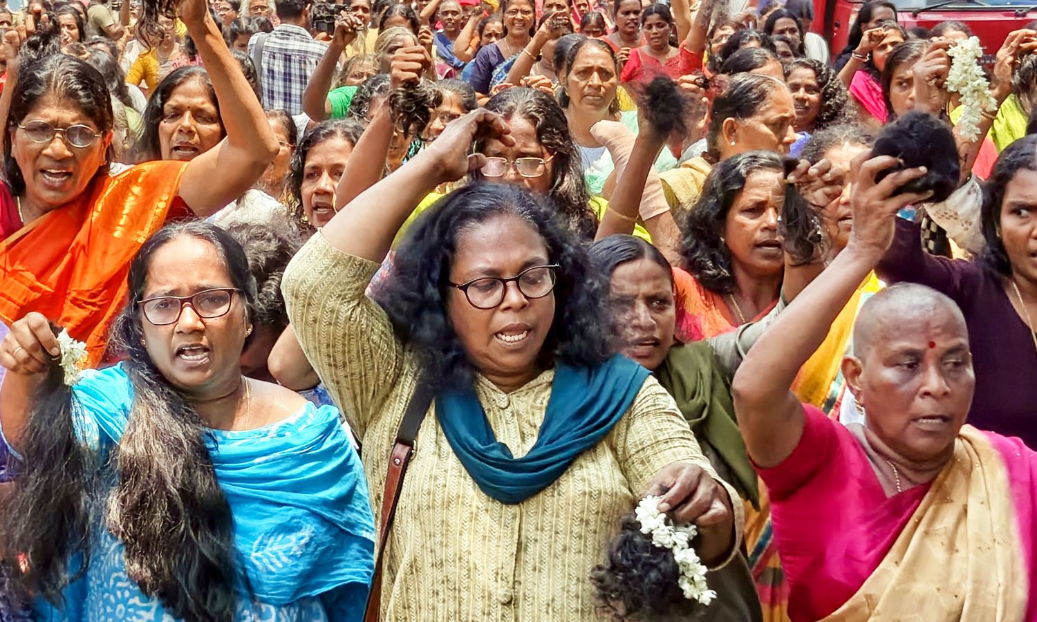 Emotional scenes unfolded as several ASHA workers from across districts gathered at the protest venue in the morning, cutting their hair en masse while raising slogans against the government.