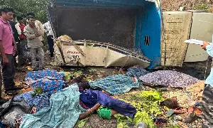 A total of 15 women, one man and three girls, all tribals, were killed and three others injured when the mini goods vehicle (a pick-up van) ferrying a group of tendu leaves collectors plunged into a valley on Banjari Ghat under Kukdur police station area.
