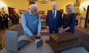 WASHINGTON: Prime Minister Narendra Modi, who is on his first State visit to the US on Wednesday (local time) gifted a handcrafted sandalwood box with 'das danam' to US President Joe Biden and a lab-grown green diamond to First Lady Jill Biden.