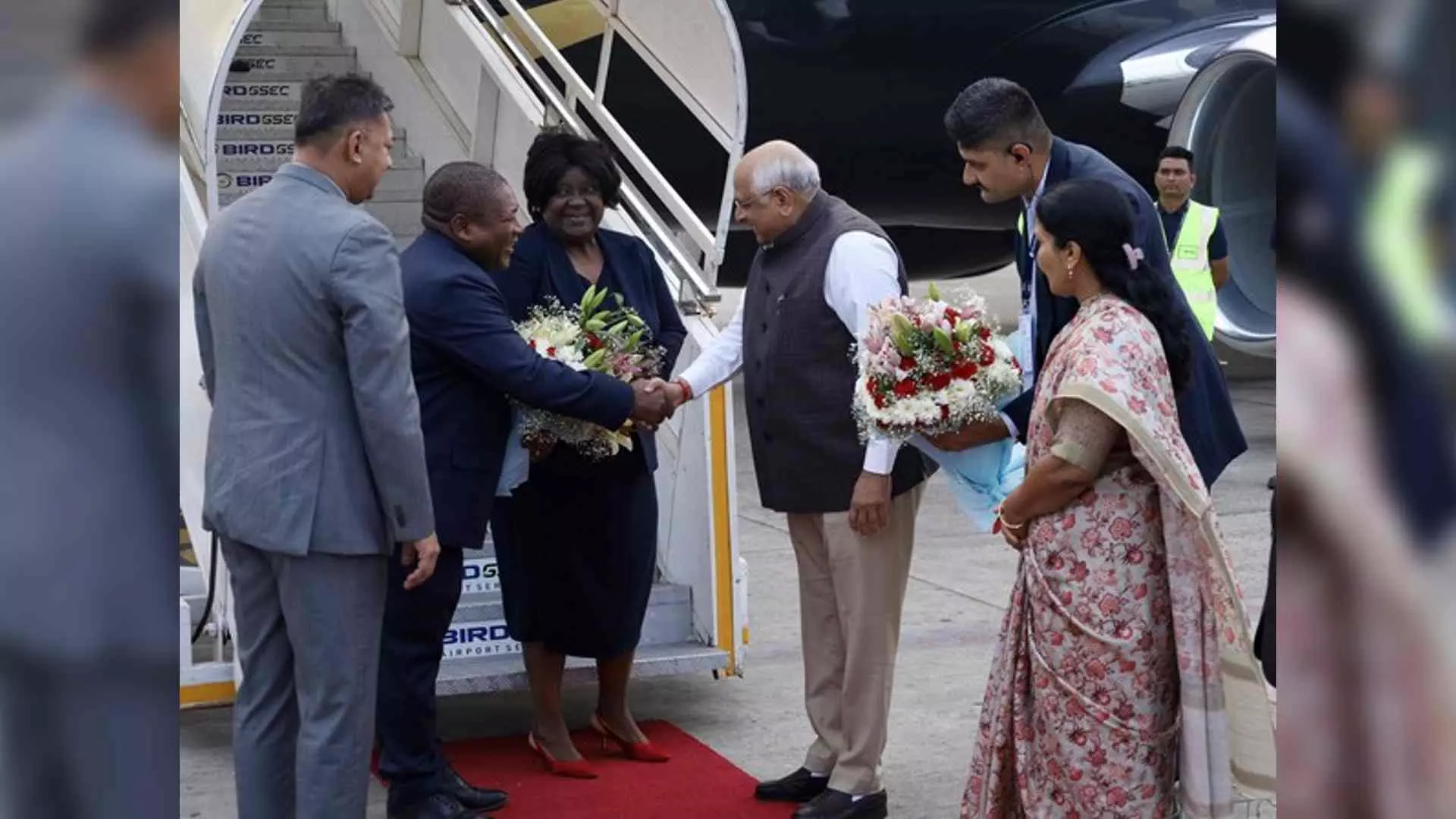 Mozambique Prez Filipe Nyusi arrives in Ahmedabad to attend Vibrant Gujarat Summit