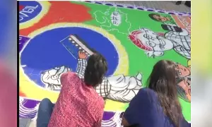 MP election: 400 square feet of rangoli made in Bhopal to encourage voting