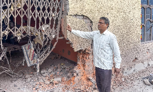 A civilian looks at damaged properties after heavy firing and shelling by Pakistan military overnight across the Line of Control and International Border, at Mendhar area of Poonch district, Jammu and Kashmir, Wednesday, May 7, 2025 (PTI)