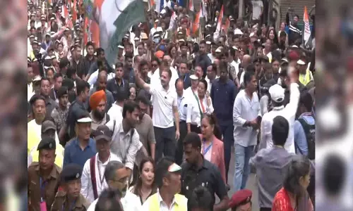 AIZAWL: Congress leader Rahul Gandhi on Monday arrived on a two-day visit to Mizoram on Monday. Upon his arrival, Rahul Gandhi also took part in a Padyatra from Chanmari (Aizawl) to Raj Bhawan.