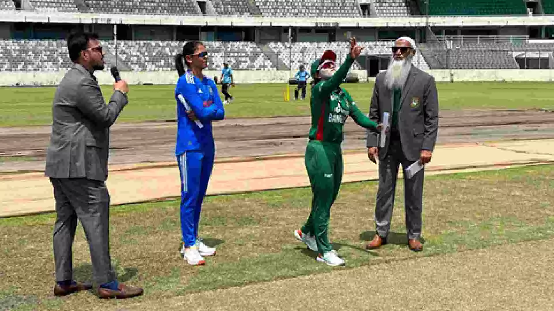 DHAKA: India captain Harmanpreet Kaur won the toss and elected to bowl first against Bangladesh in the first T20I at the Sher-e-Bangla National Cricket Stadium, here on Sunday. The venue is hosting international women's matches after 11 years.