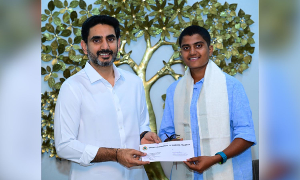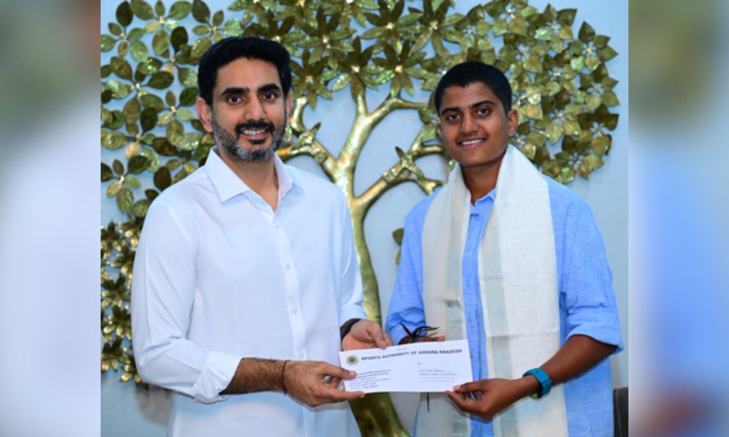 Education and IT Minister Nara Lokesh personally met Shree Charani at his Undavalli residence and presented her with the cheque on behalf of the coalition government.