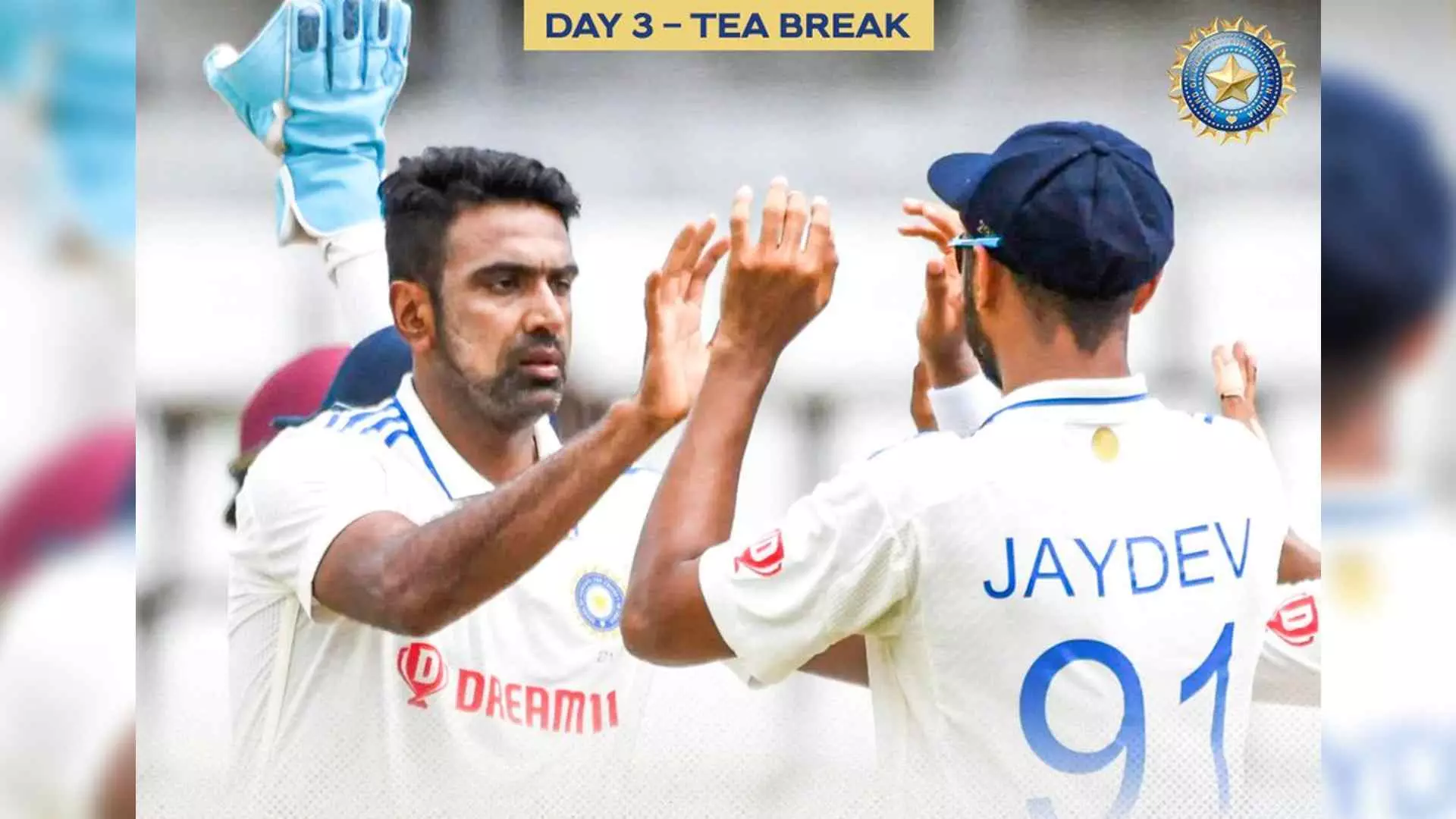 Ashwin bowls magic delivery as West Indies crawl to 174/3 at tea