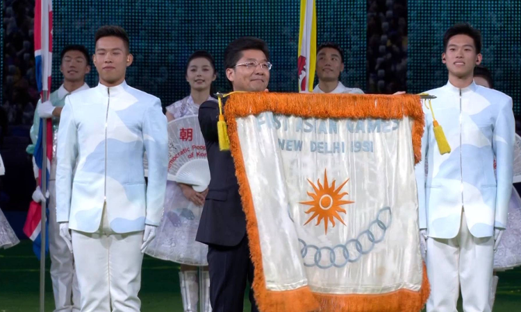 As per protocol, the first Asian Games Torch, first Asian Games Flag and Olympic Council of Asia Flag have been handed over to the next hosts, Japan