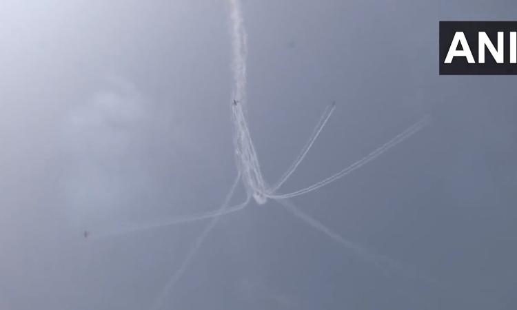 Indian Air Force performs air show over Narendra Modi Stadium in Ahmedabad, Gujarat.
