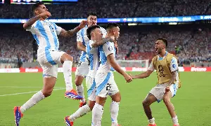Lautaro Martinez and his teammates celebrate Argentina's winner on Tuesday night