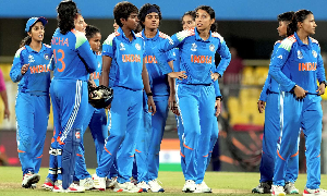 The 39-year-old Inoka ripped through the Indian middle order, snaring three wickets in five balls -- a well-set Harleen Deol (48), Jemimah Rodrigues (0) and skipper Harmanpreet Kaur (21) -- to leave India reeling.
