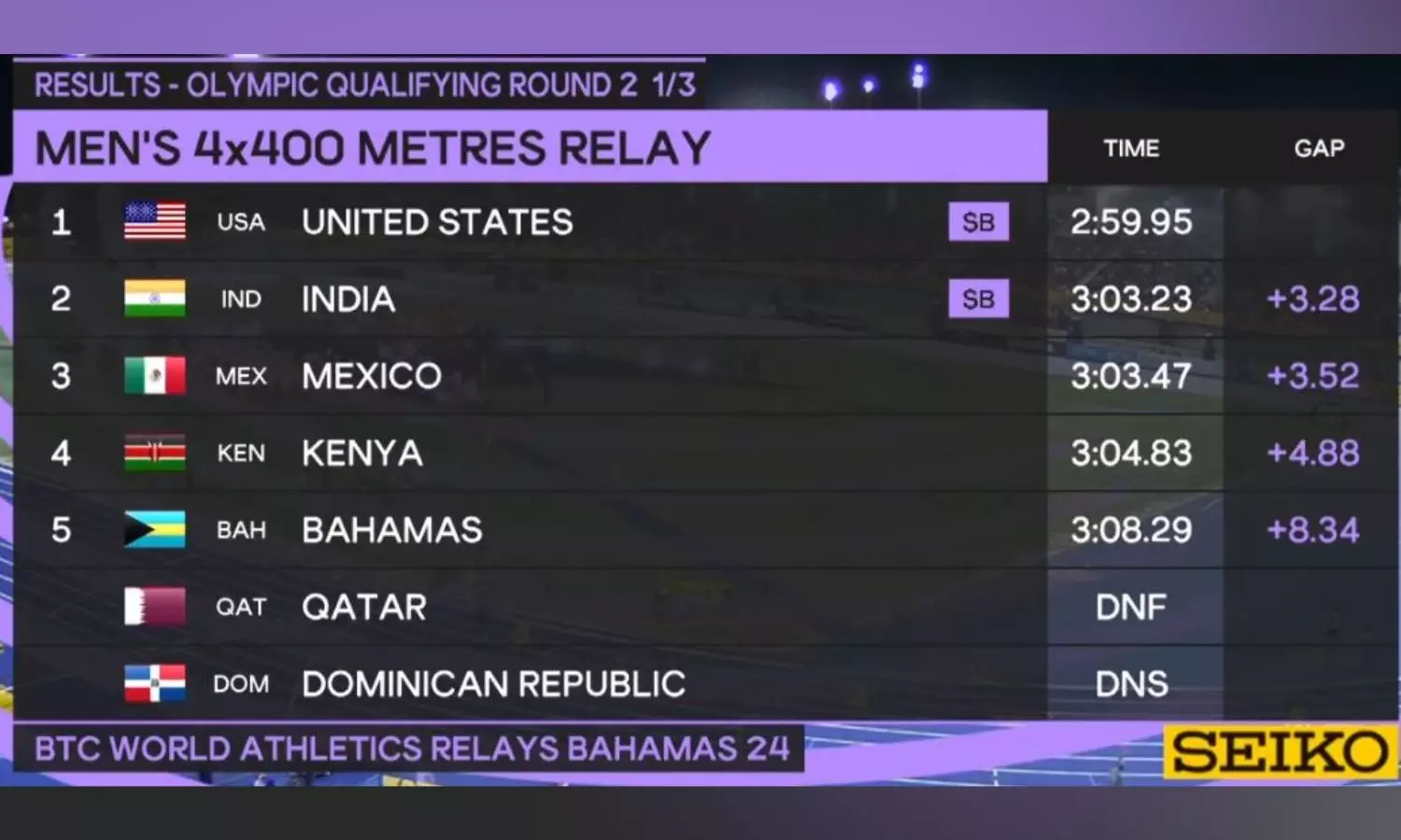 The men’s team, comprising Muhammed Anas Yahiya, Muhammed Ajmal, Arokia Rajiv, and Amoj Jacob, clocked 3:03.23, finishing second, which was enough to secure a Paris Quota. It also marked the Indian men’s season-best time. The United States took first place, clocking 2:59.95.