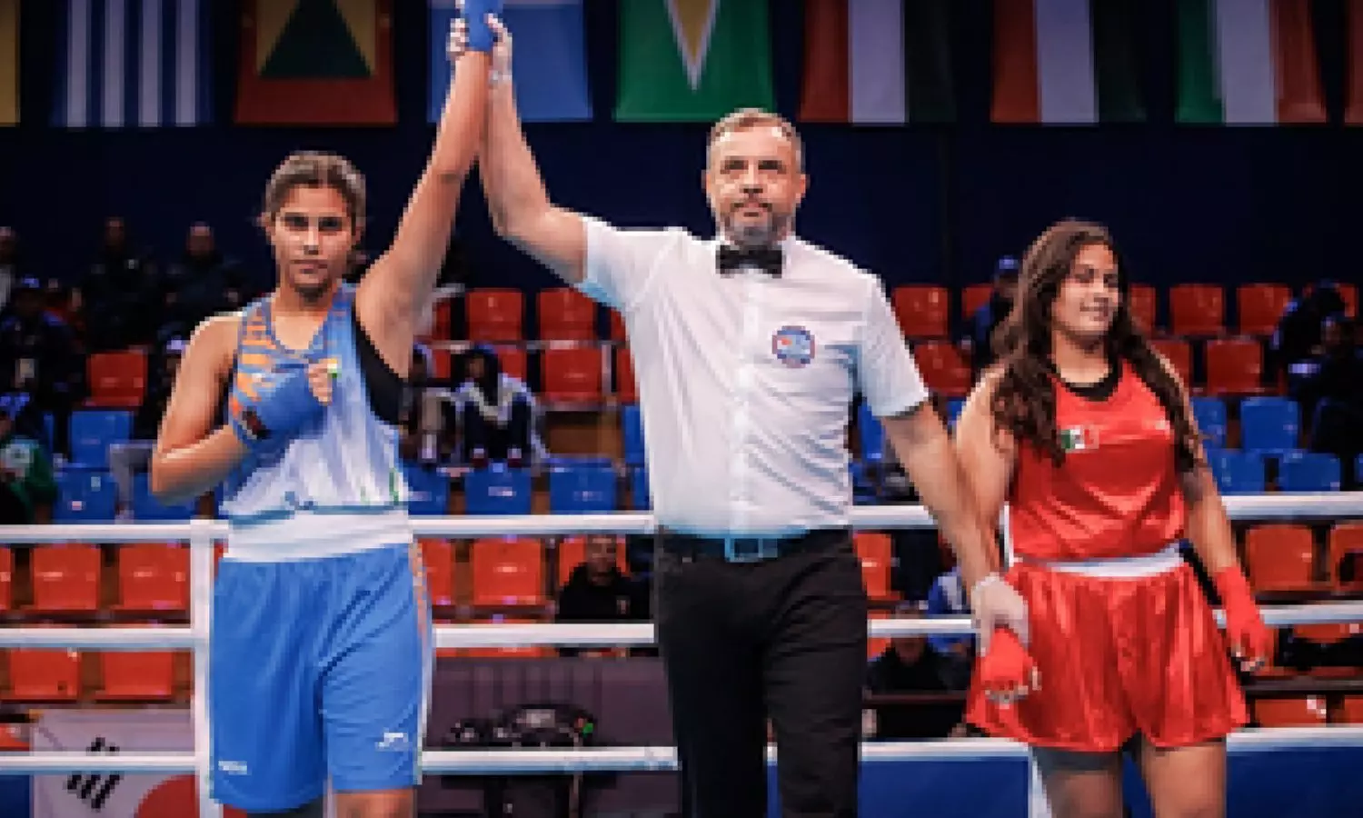 Indian girls once again led the proceedings with their dominant show as all five boxers in action won their respective matches to enter the semis. Akansha (70kg) began the day on an aggressive note before her opponent Kurbonboeva Rayhona of Uzbekistan unsettled the Indian pugilist with her counterattack. However, Akansha ultimately won 4-1 on split decision verdict.