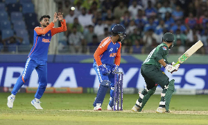 India began with Hardik Pandya dismissing Saim Ayub on the first legitimate delivery of the game and Jasprit Bumrah dismissing Mohammad Haris next to leave Pakistan tottering at 6 for 2.