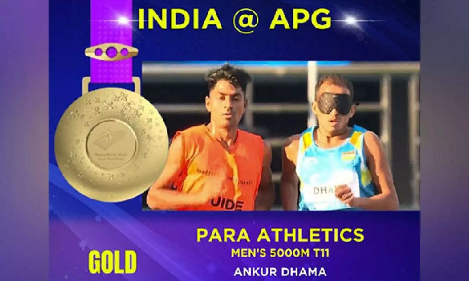 HANGZHOU: It is raining medals for the Indian contingent at the ongoing Para Asian Games in Hangzhou as the para-athlete Ankur Dhama made the nation proud with a gold medal in men's 5000 m T11 final on Monday.