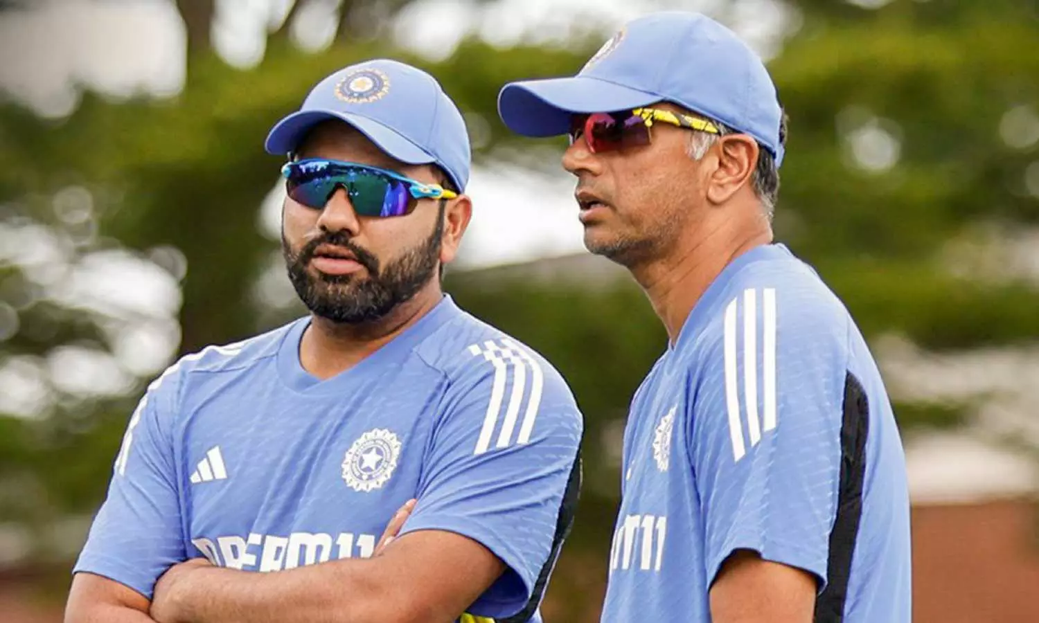 Rohit Sharma and Rahul Dravid during a practice session (PTI)