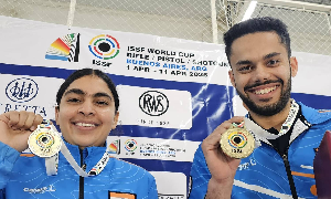 BUENOS AIRES: Paris Olympian Vijayveer Sidhu fetched India its fourth gold medal at the ISSF World Cup after he emerged victorious in the men's 25m rapid-fire pistol event here.