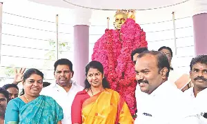 Kanimozhi Karunanidhi, Thoothukudi MP, P Geetha Jeevan, Social Welfare Minister, Anitha R Radhakrishnan and other important personalities paid floral tributes before the newly installed statue