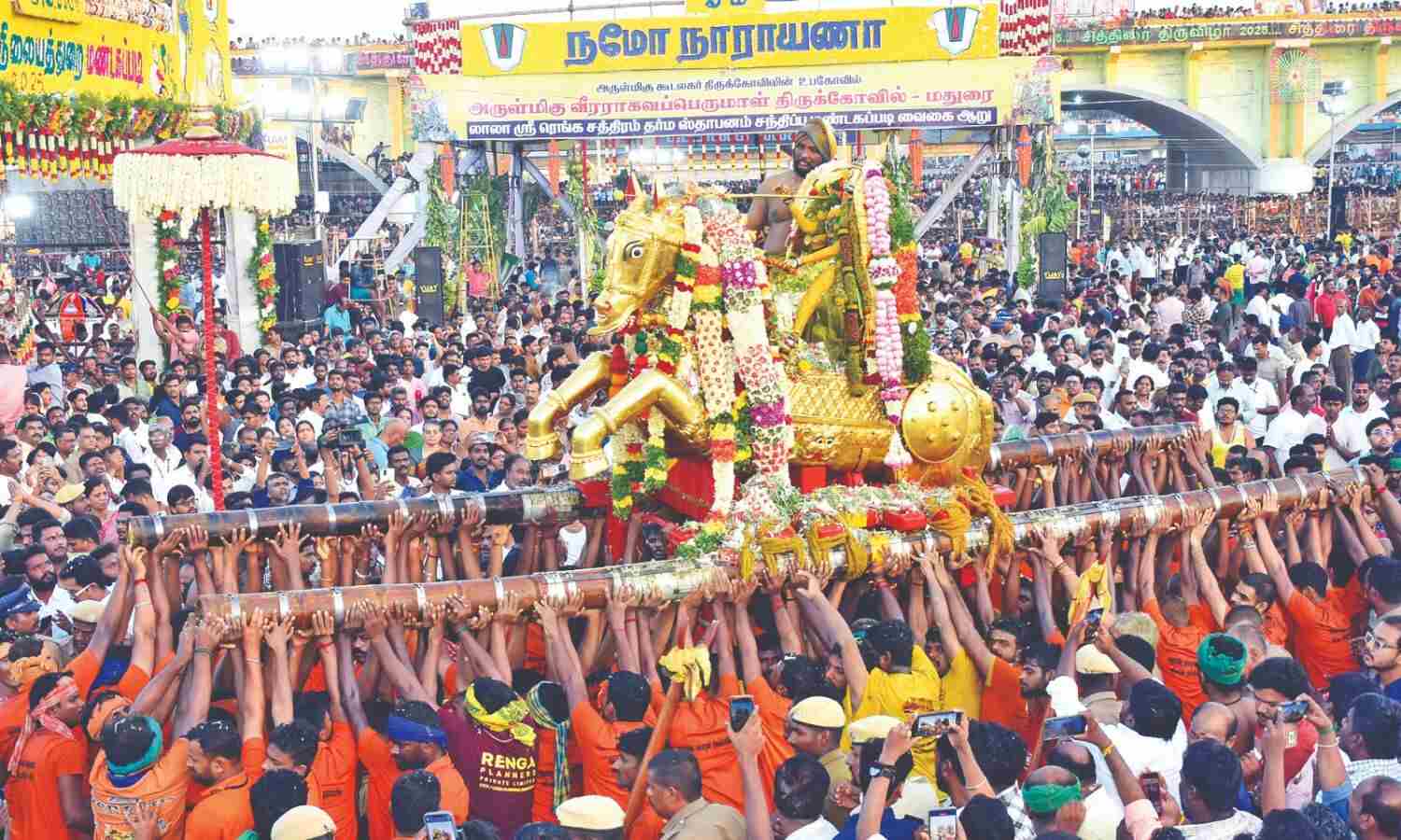 Lakhs of devotees from across districts and states had gathered from Thallakulam to the Vaigai river, making the entire Madurai city resonate with a festive spirit.