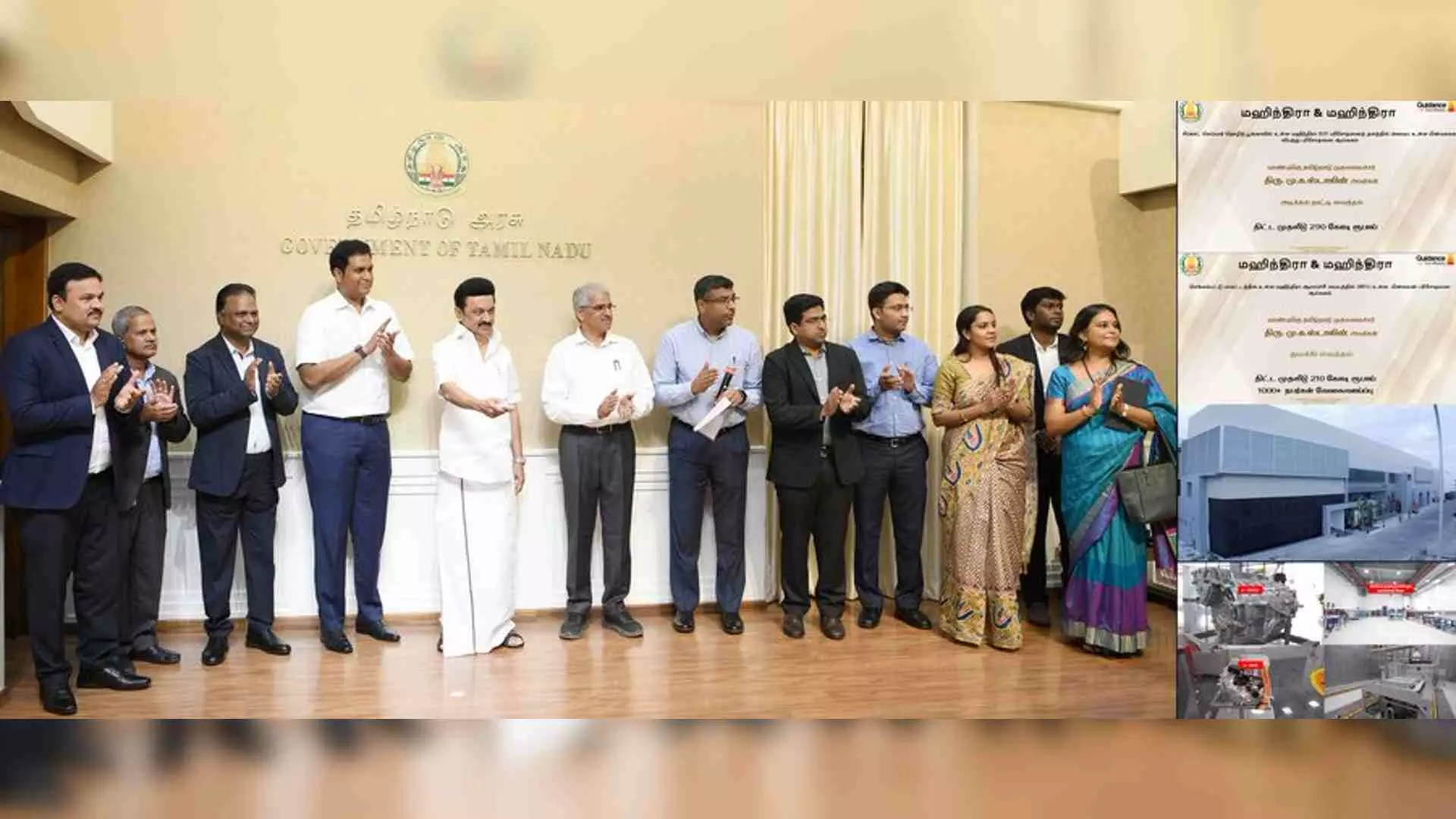 தொழில், முதலீட்டு ஊக்குவிப்பு மற்றும் வர்த்தகத்துறை சார்பில், செங்கல்பட்டு மாவட்டத்தில் உள்ள மஹிந்திரா ஆராய்ச்சி மையத்தில் (Mahindra Research Valley) ரூ. 210 கோடி முதலீட்டில், 1000-த்திற்கும் மேற்பட்ட நபர்களுக்கு வேலைவாய்ப்பு அளிக்கும் வகையில் மஹிந்திரா & மஹிந்திரா நிறுவனம்… pic.twitter.com/uYcrZ5vDuq