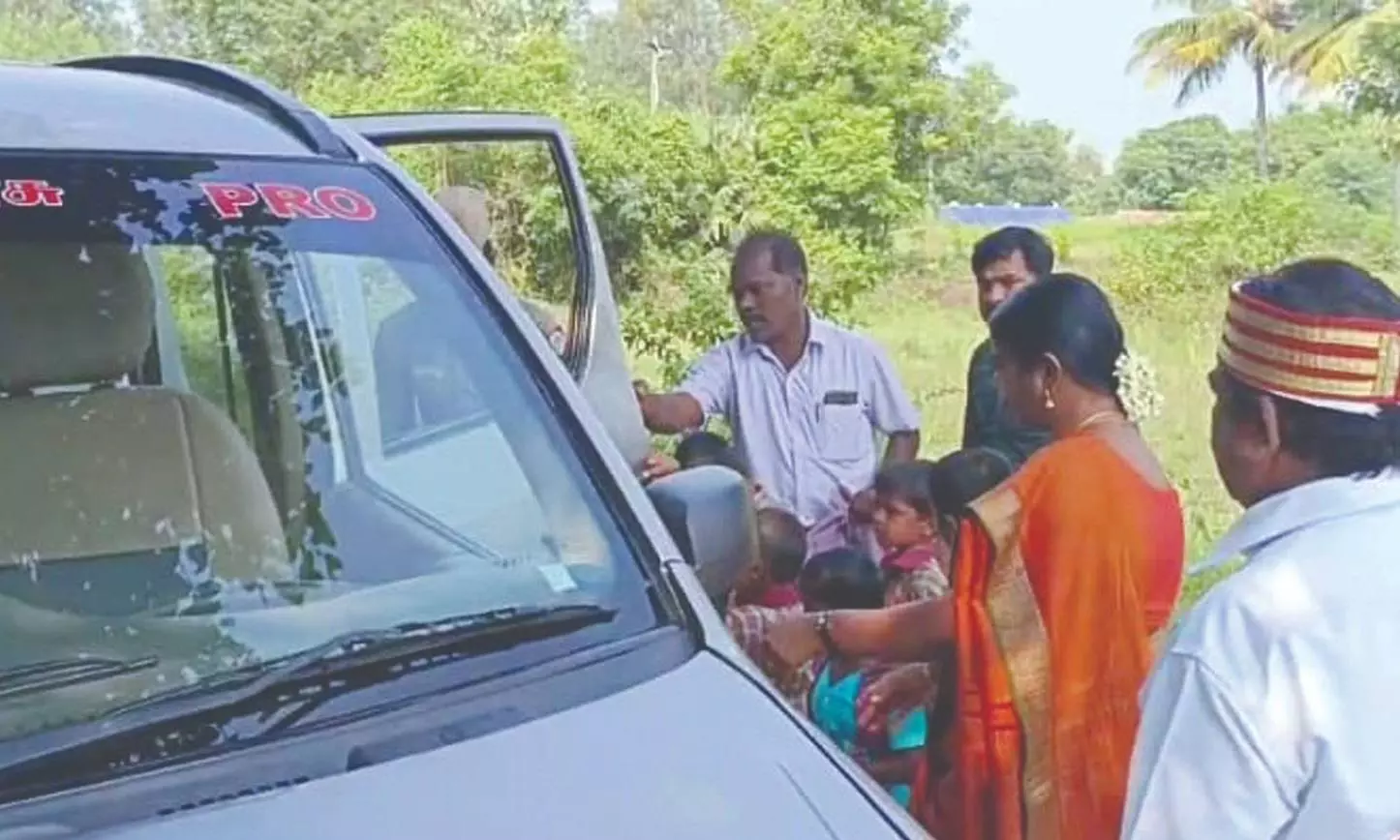 The Omni van with seven children lost control while turning a curve and landed in a ditch. Collector Valarmathi was returning from Pudupet and was on her way to Ponnappanthangal village when the accident happened in front of her vehicle.
