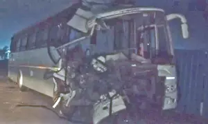 In the impact, the couple got crushed to death on the spot while the occupants of the bus suffered injuries.