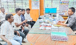 Members of the untouchability eradication front interacting with the Karur DRO M Kannan on Friday