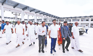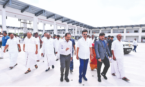 Chief Minister Stalin inspects the new bus terminus in Dharmapuri on Monday