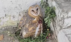 Soon, on information, the staff from the State Forest Department arrived at the spot and found that it was a Barn owl and gave treatments to the owl.
