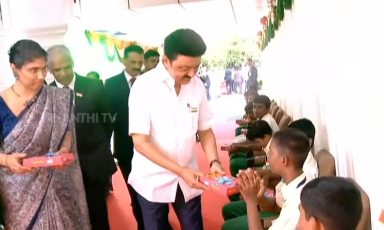 After delivering the Independence Day Speech, CM Stalin begins to confer awards